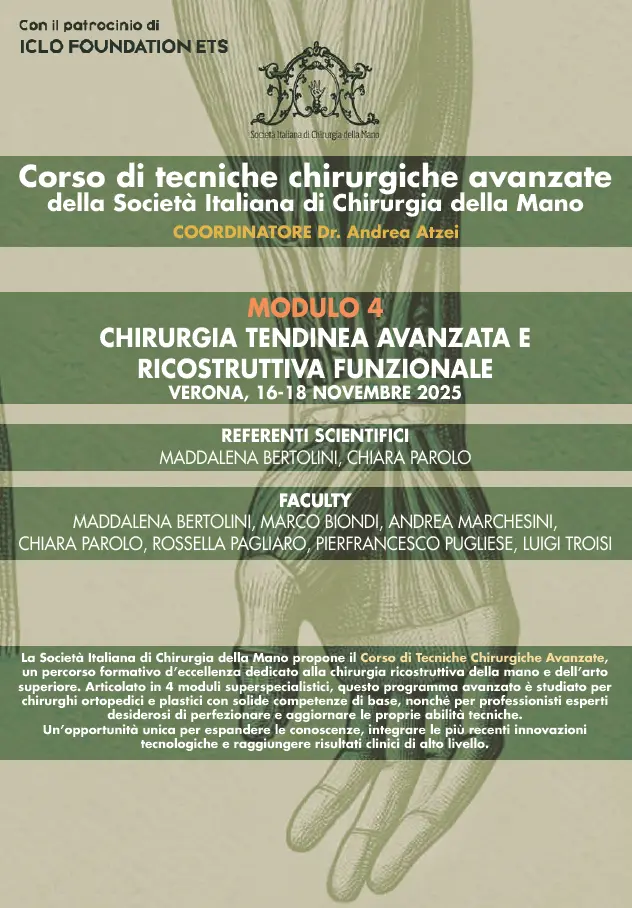 Maggiori informazioni: https://iclo.eu/courses/corso-sicm-avanzato-chirurgia-tendinea-e-ricostruttiva/