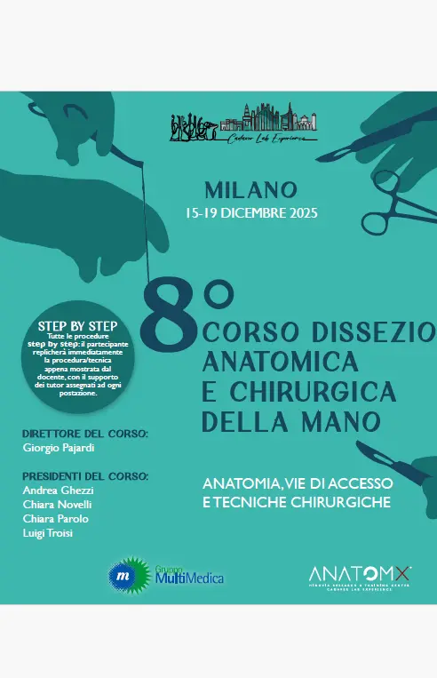 Maggiori dettagli: : https://anatomx.com/prodotto/8-corso-dissezione-anatomica-e-chirurgica-della-mano/