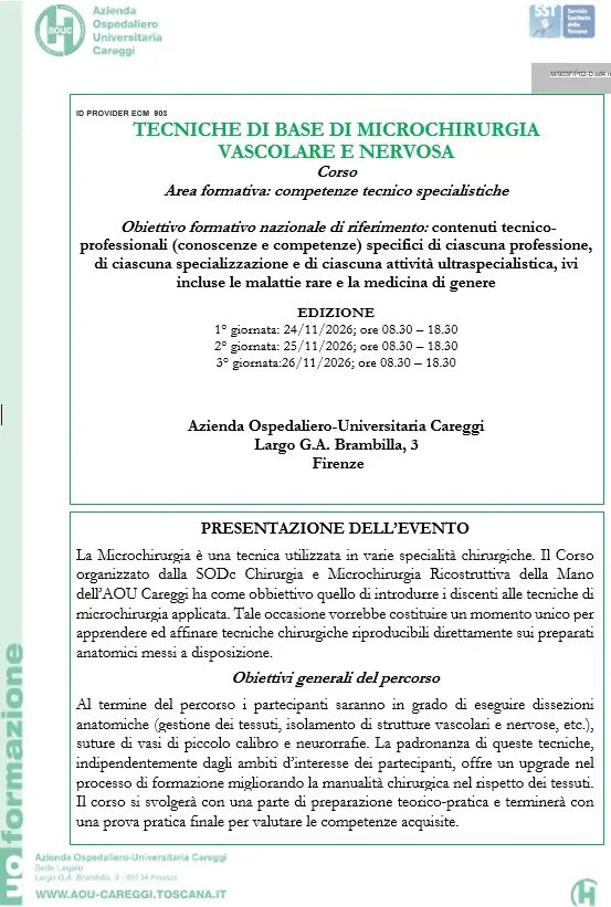 Per maggiori dettagli e iscrizione per INTERNI/ESTERNI disponibile sul sito di AOU Careggi nella sezione Formazione>Corsi e Convegni: https://www.aou-careggi.toscana.it/internet/formazione/piano-formativo-corsi-e-convegni-2/